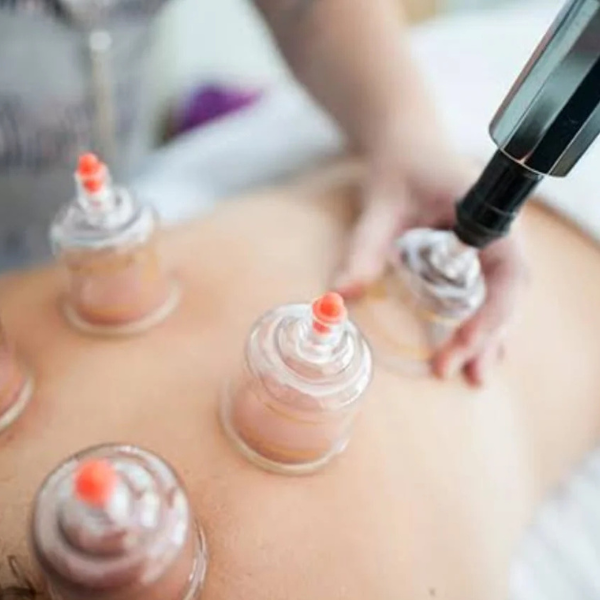 Técnica terapêutica que utiliza ventosas para estimular a circulação, aliviar dores musculares e promover relaxamento.